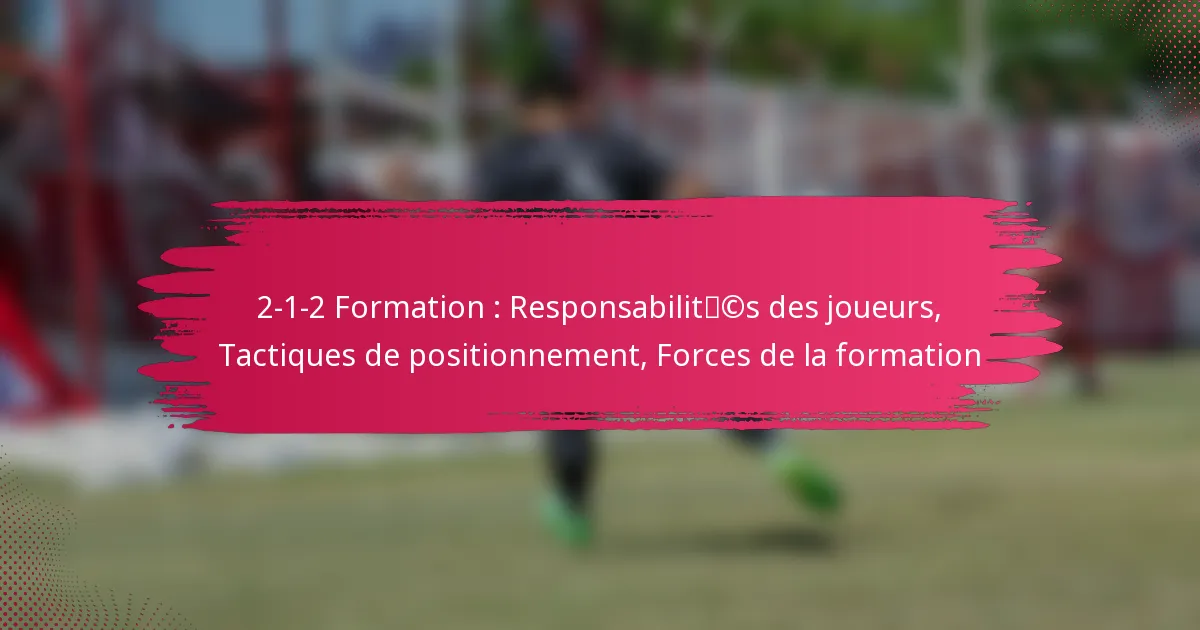 La formation 2-1-2 implique des rôles spécifiques pour chaque joueur, se concentrant sur une approche équilibrée entre défense, contrôle du milieu de terrain et options d’attaque. Les responsabilités de chaque joueur sont cruciales pour maintenir la structure et l’efficacité de l’équipe pendant un match.