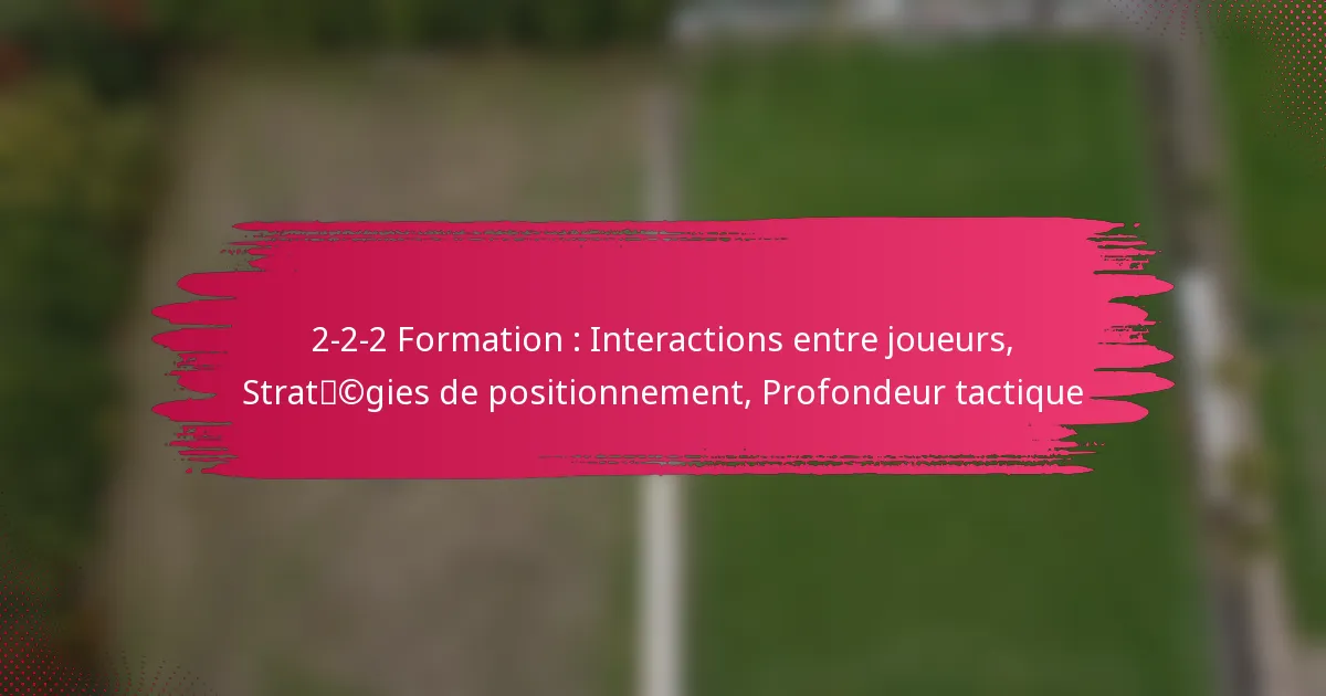 La formation 2-2-2 au football est un dispositif tactique qui comprend deux défenseurs, deux milieux de terrain et deux attaquants, établissant un équilibre entre défense et attaque. Cette formation repose fortement sur les interactions et la communication entre les joueurs, permettant des transitions fluides et un positionnement stratégique sur le terrain. En optimisant la conscience spatiale et en tirant parti des rôles des joueurs, les équipes peuvent adapter efficacement leurs tactiques pour contrer les adversaires tout en maintenant une structure cohésive.