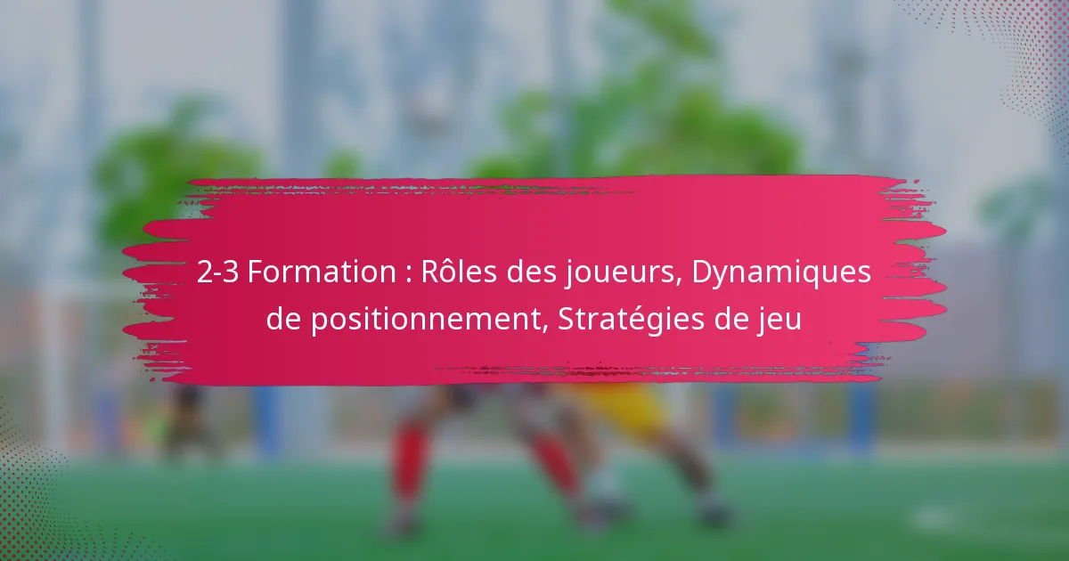 La formation 2-3 comprend deux défenseurs et trois milieux de terrain, créant une structure équilibrée qui met l’accent sur les stratégies offensives et défensives. Comprendre les rôles des joueurs et les dynamiques de positionnement est crucial pour un jeu efficace dans cette formation.