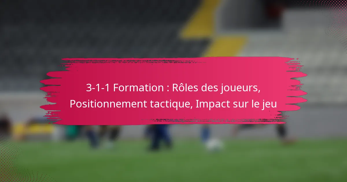 La formation 3-1-1 présente des rôles de joueurs distincts qui contribuent aux stratégies défensives et offensives. Comprendre ces rôles aide les équipes à optimiser leur performance sur le terrain, garantissant une communication efficace et une adaptabilité durant les matchs.
